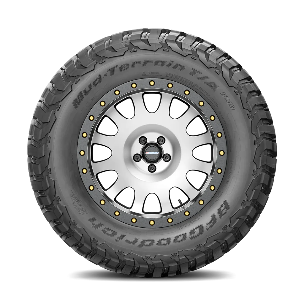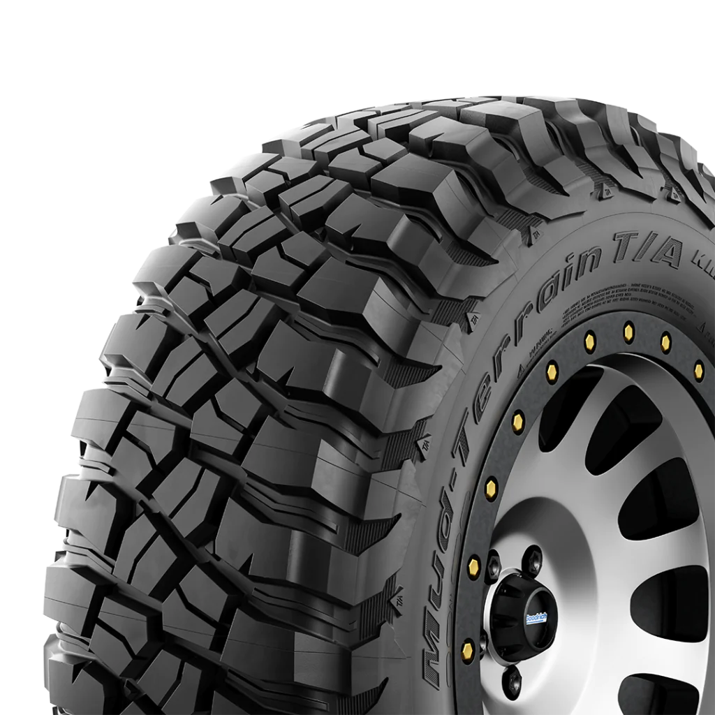 The BFGoodrich Mud-Terrain T/A KM3 has 5 percent better mud traction than its predecessor. “Mud-Phobic” bars on the tire’s shoulders are designed to release compacted mud for enhanced traction in muddy or soft soil conditions. The tire’s Terrain-Attack tread pattern includes massive tread blocks designed to deliver incredible grip from any angle of approach.