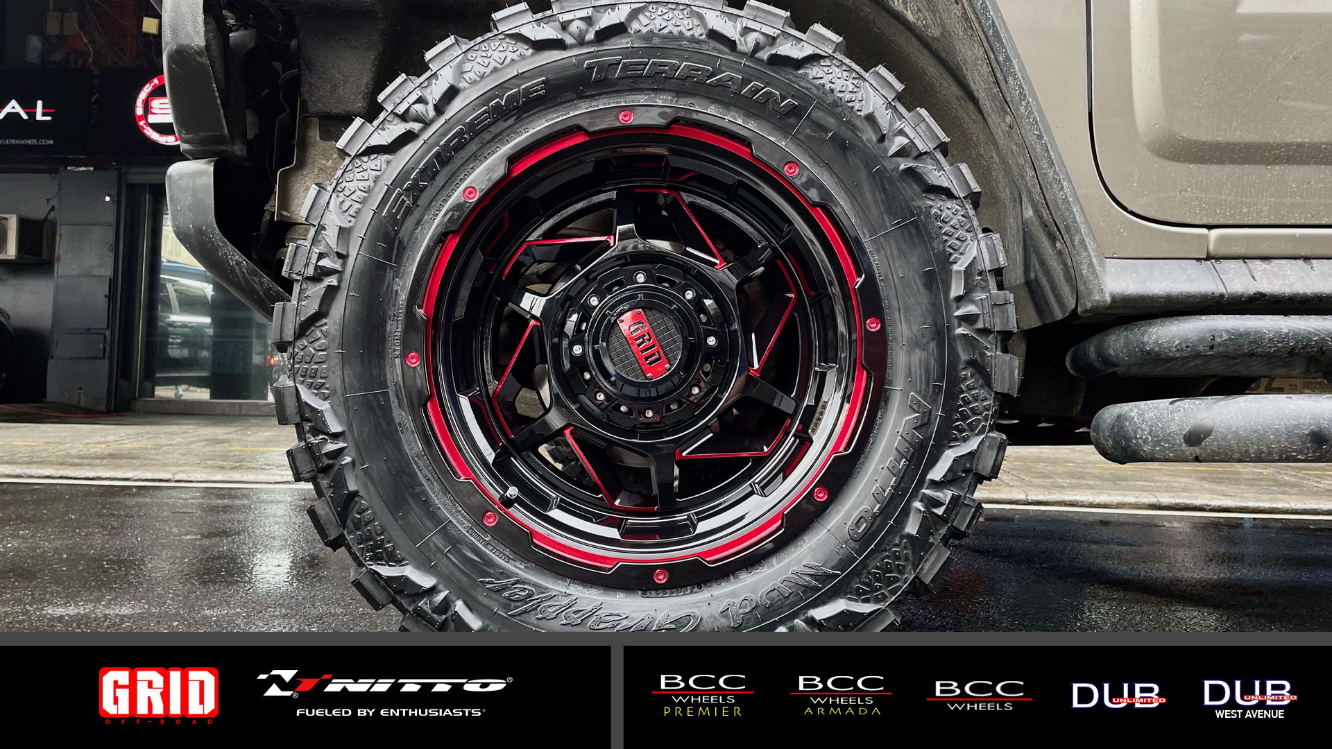 GRID Off-Road GD14 | 20 Inch Gloss Black Red Milled with Nitto Tires Mud Grappler