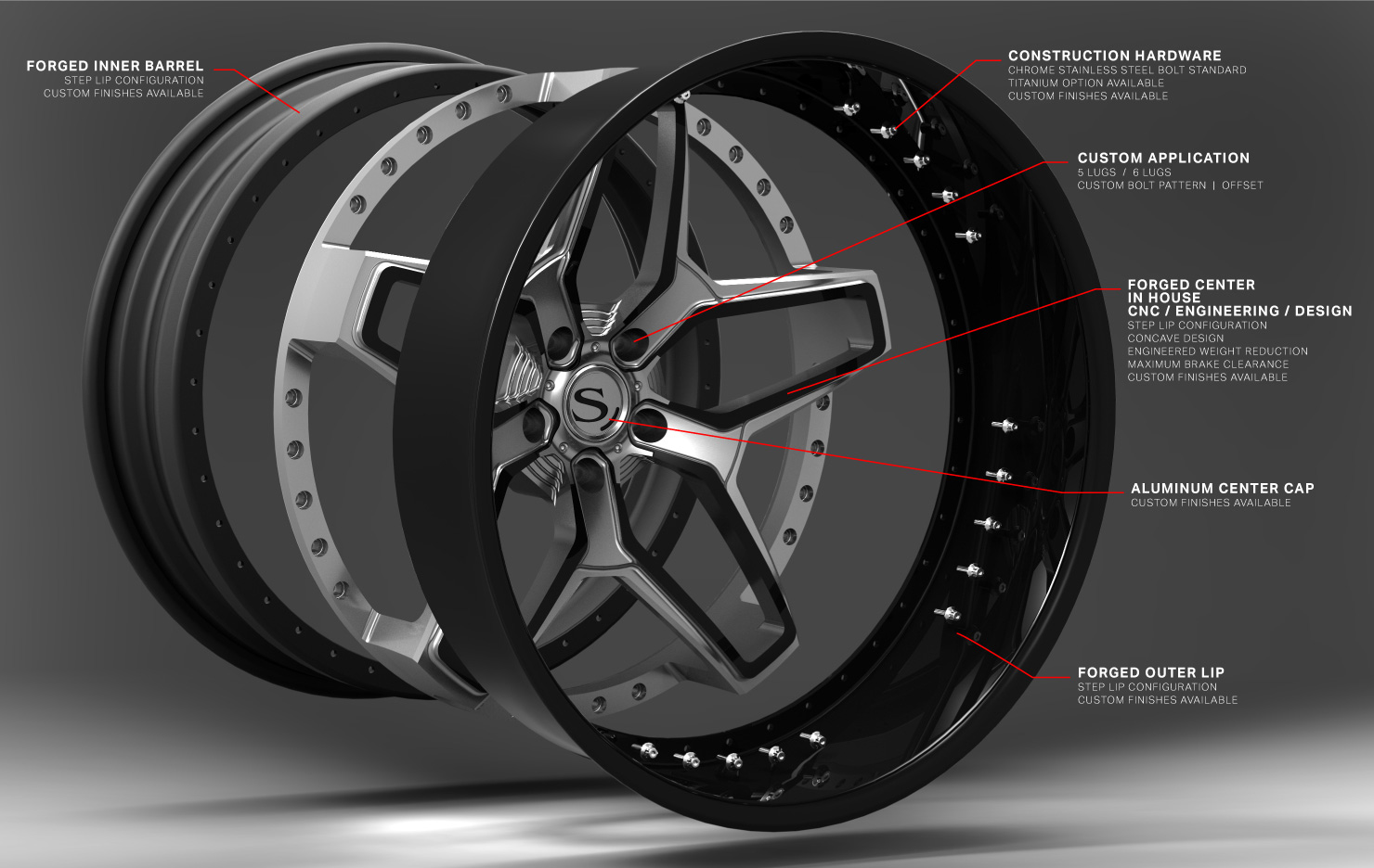 The Savini Forged line is our most refined and meticulously designed products cut from only the best aluminums in a multi-piece construction with (7) different profile configurations and a wide variety of custom finishes.