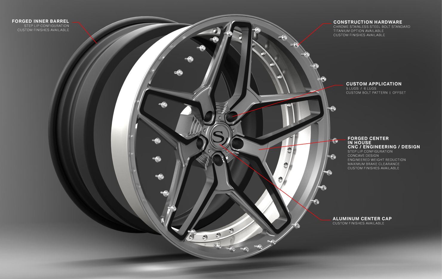 The Savini Forged line is our most refined and meticulously designed products cut from only the best aluminums in a multi-piece construction with (7) different profile configurations and a wide variety of custom finishes.